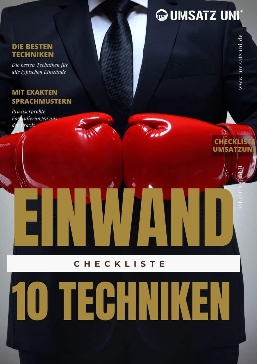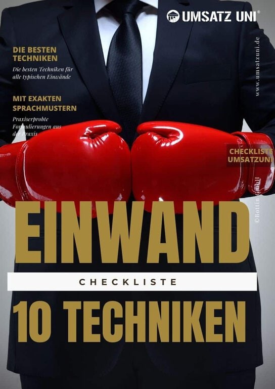 Sichere dir die 10 Techniken und mach Schluss mit unbeantworteten Einwänden.