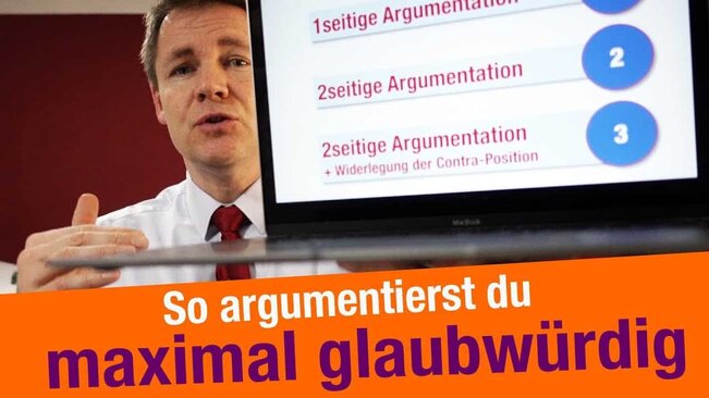 Aber Vorsicht, denn eine reine Pro- und Contra-Argumentation ist wenig wirksam. Du musst deine Contra-Position in deiner Argumentation gezielt widerlegen. Wie genau das geht zeige ich dir in diesem Video.